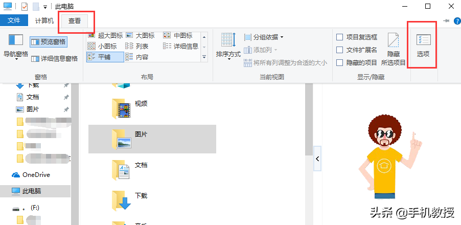 插入U盘,打开“我的电脑”/“此电脑”- 查看- 选项。