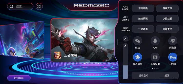 不仅如此,在游戏中红魔5S也提供了诸如144Hz刷新率、主动式散热风扇、以及游戏画面和音效增强等功能的快捷开关。事实上,它甚至具备像“一键连招(触控宏)”和“准星辅助(在不具备准星的游戏里额外显示准星)”这种以往在PC电竞设备上才会出现的“高级特性”。而对于红魔5S的用户来说,这显然会带给他们额外的战术优势。