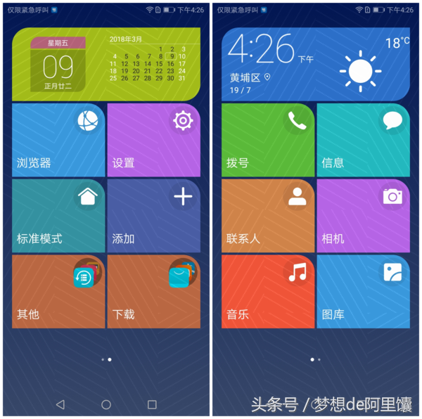 同时,系统加入简易模式。简单明了的布局。大字体,大图标,色彩差异化的应用模块,在符合年轻人使用习惯的同时,也同样适合父母使用,使用起来极为直观,便捷。